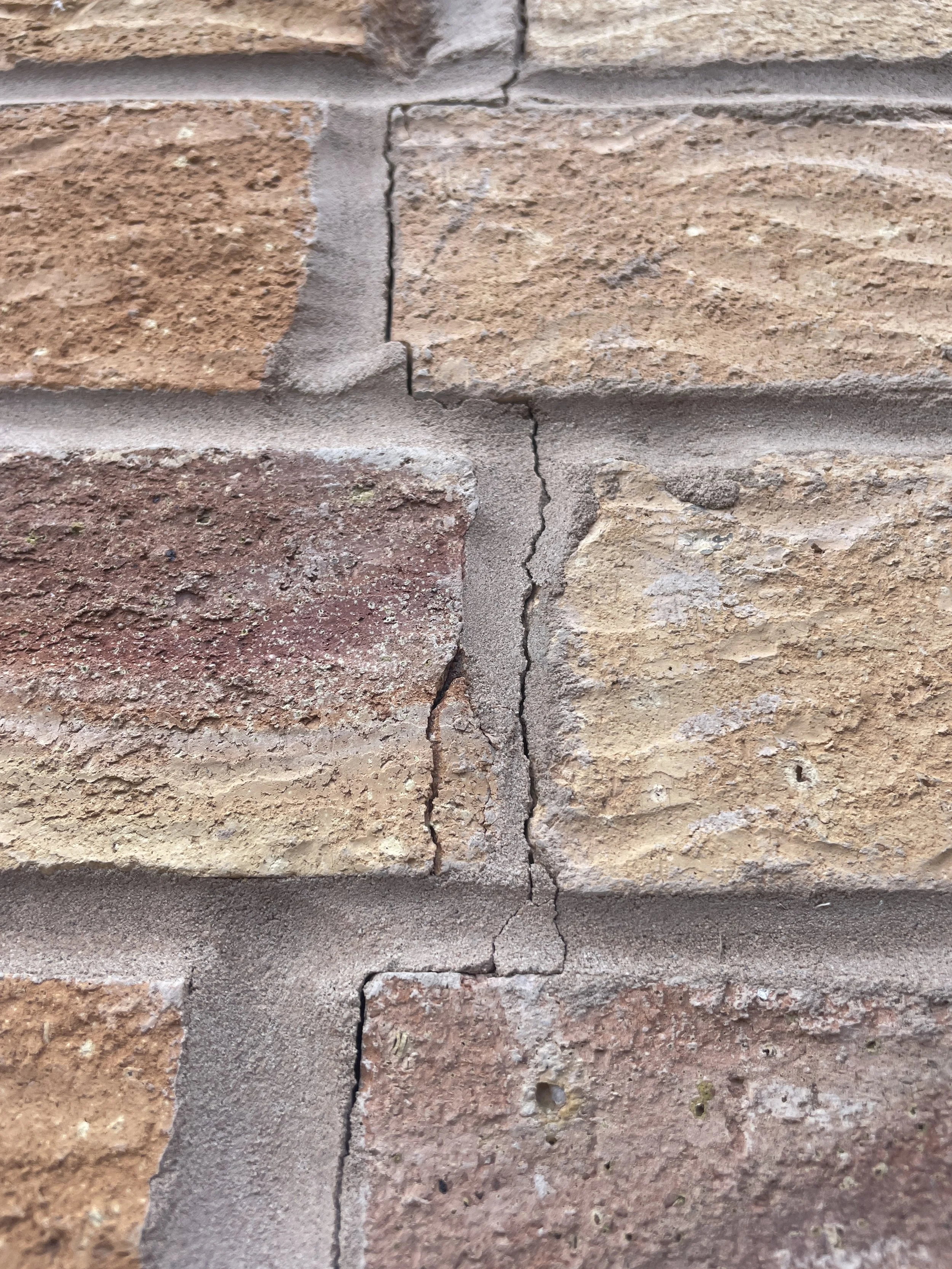 Step Cracks (Stair-Step): Step cracks follow the mortar joints in a zig-zag pattern across brick or blockwork. They are typically caused by differential settlement, subsidence, or poor workmanship. BRE guidance notes that step cracks are particularly common in areas with shrinkable clay soils. Monitoring is vital to assess whether the cracks are stable or progressive, with underpinning or rebuilding sometimes required if movement continues